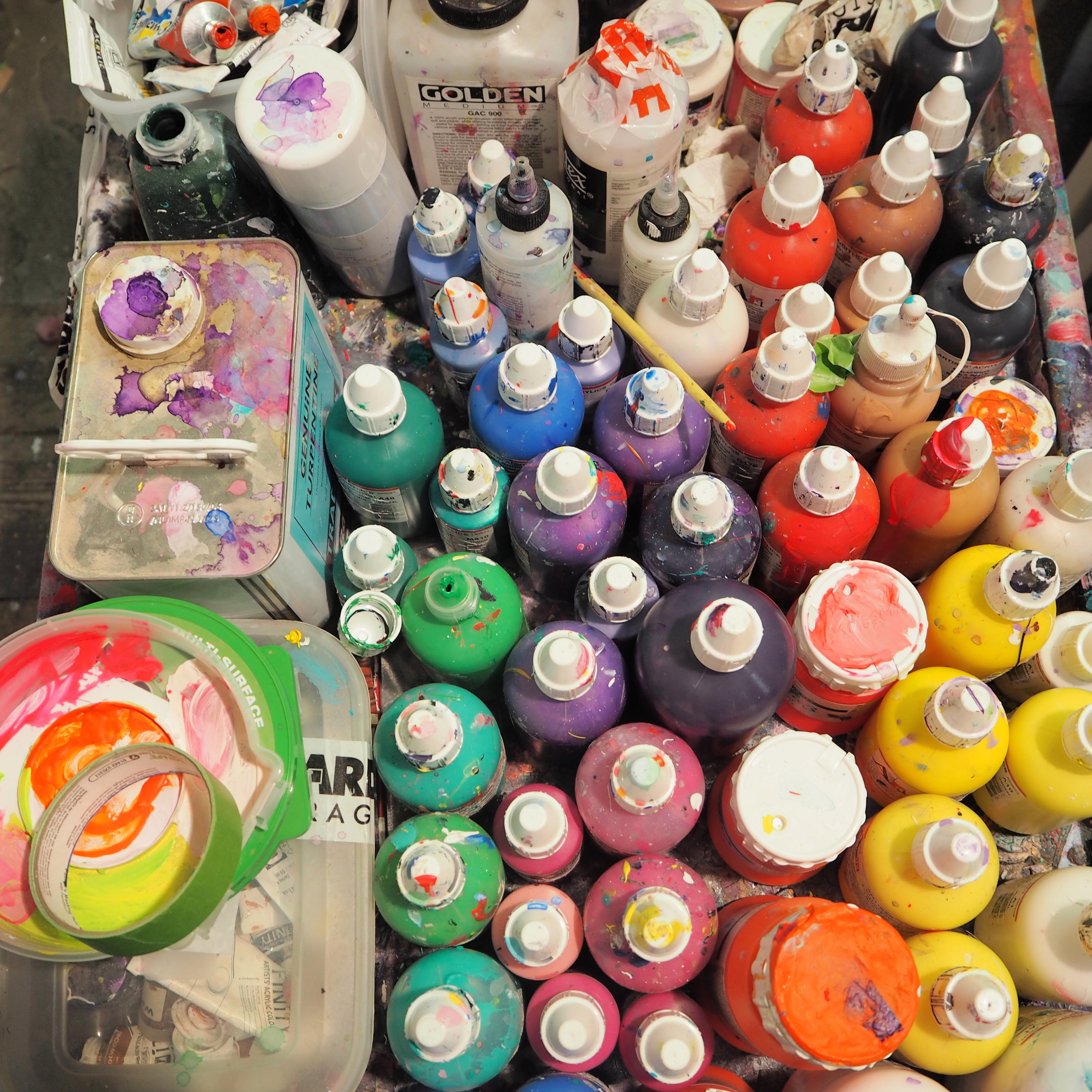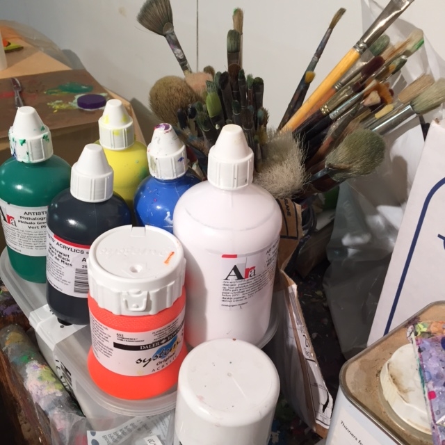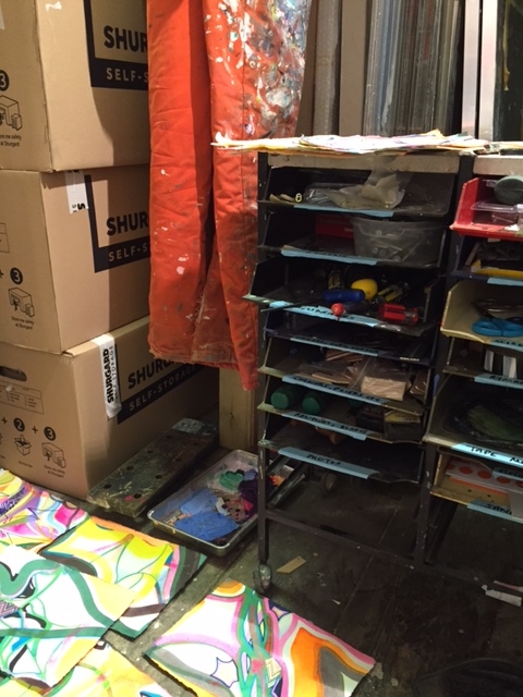 It’s always fascinating to visit the environment that an artist creates in. The artwork takes on a more informal quality than when experienced in a white walled gallery. To truly reflect on art, the gallery environment is needed, a quiet space devoid of colour and noise so that the viewer can focus completely on the art in front of them. But it always seems like a special treat to get that behind the scenes glimpse at where the work is created.