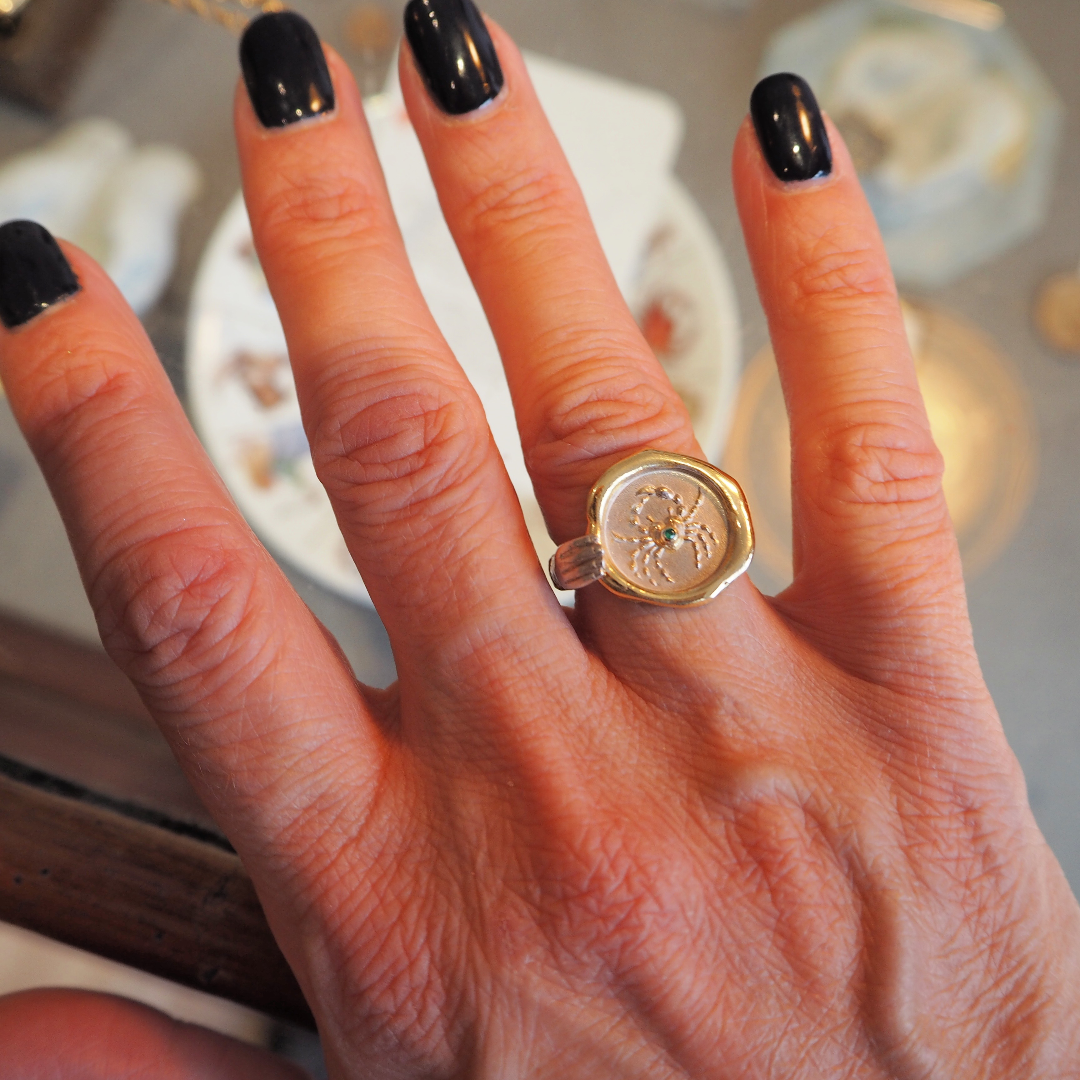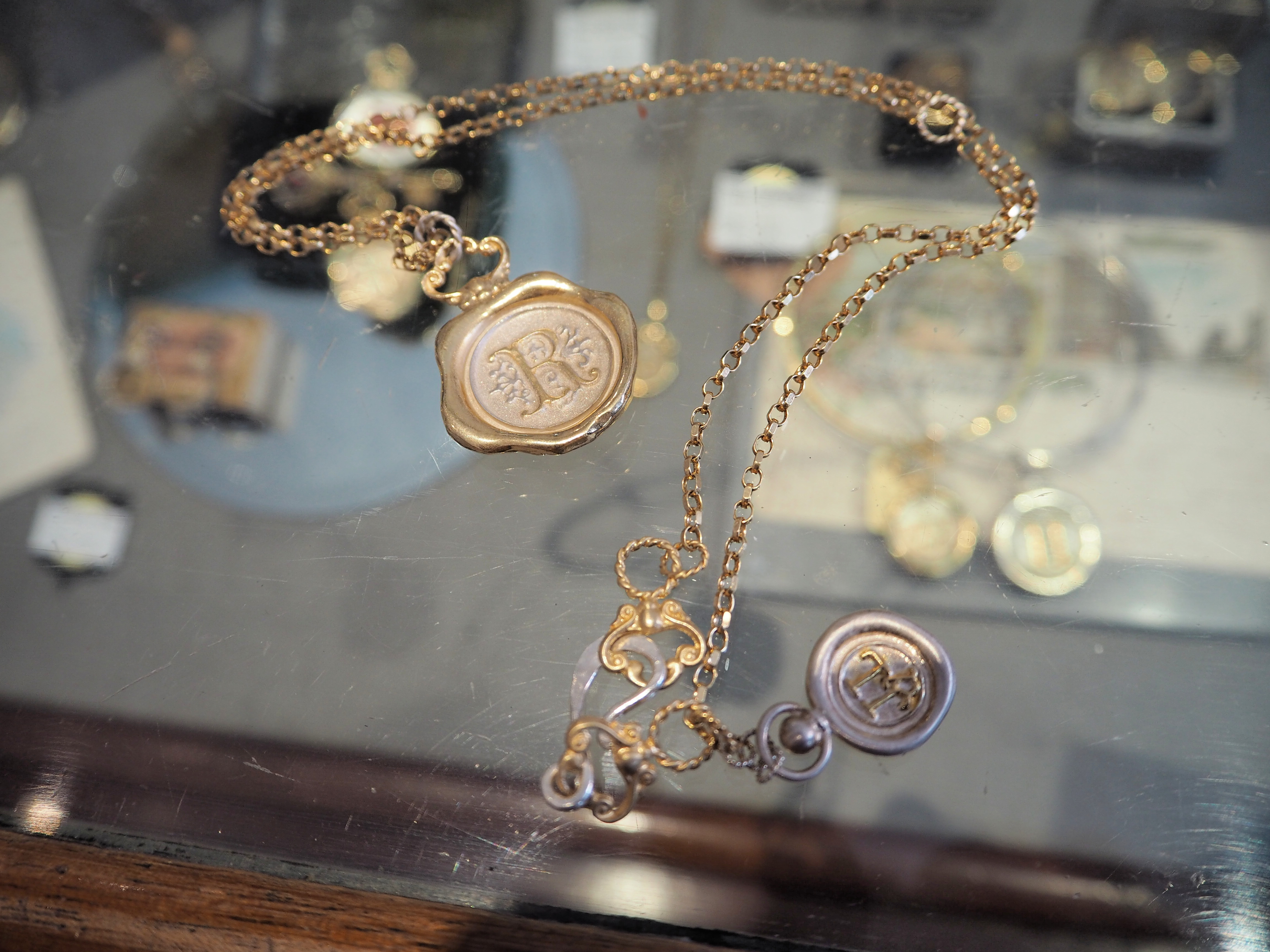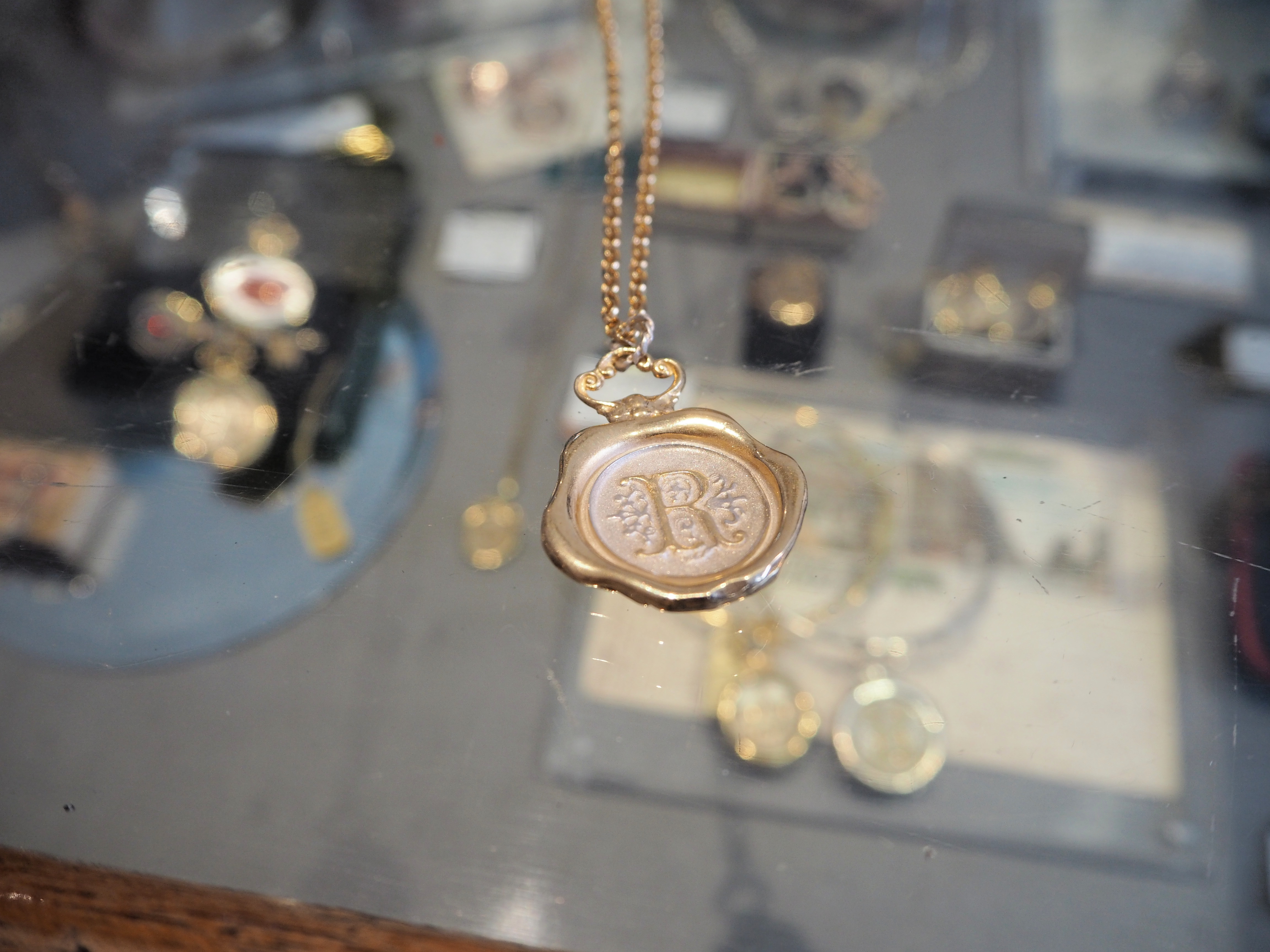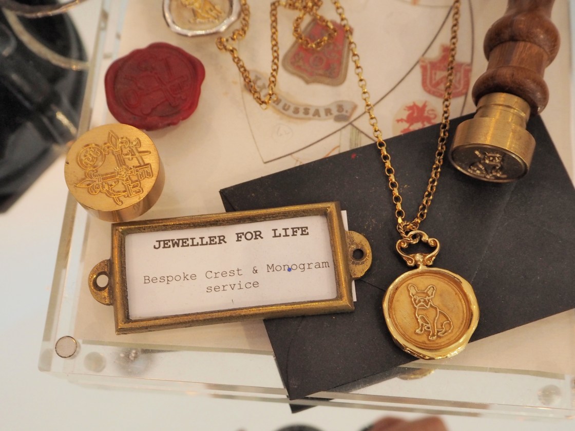 I visited Jessica in her shop come studio in London’s Kentish Town. It’s like Miss Havisham’s lair, but occupied by an effervescent, sparkly Jessica and her stuffed squirrel in a crown. I loved it immediately and wanted to spend time touching everything like a child in a sweet shop. Jessica has an absolute passion for her work and her customers’ stories; much of her work is to commission – engagement rings, celebratory pieces, personalized gifts – ‘modern heirlooms’ as a recent article in The Times describes them. I love the personalised wax seals which can then be created as pendants, earrings, cufflinks, rings etc.