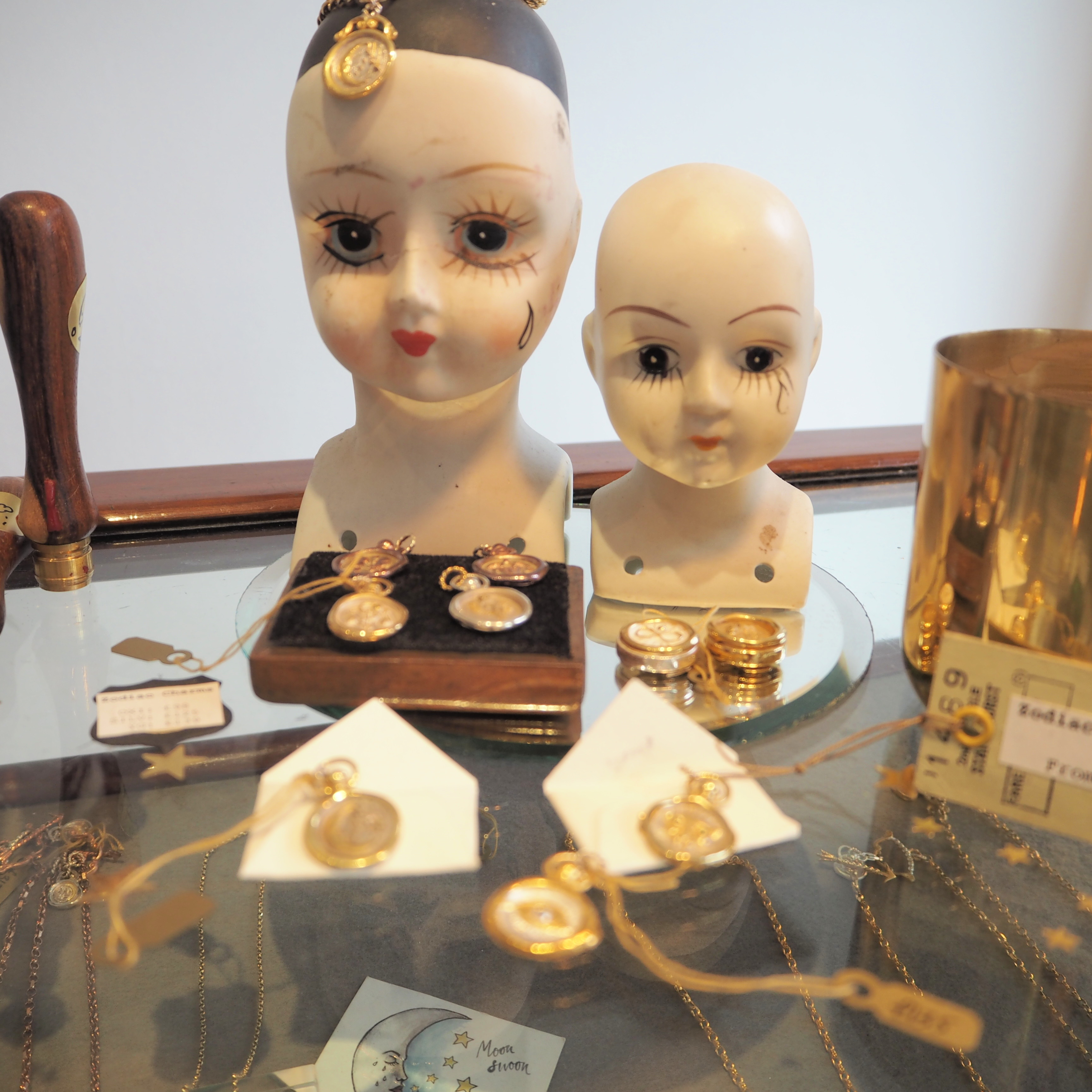 Jessica is very unusual. She studied jewellery design at Central St Martins, but to me she seems more of an artist than a designer. Like a magpie, she accumulates objects from her travels, taking inspiration from their aesthetic and poetic stories of days gone by. Muses include a woman named Gladys, whose 21st birthday memorabilia Jessica came across in an old fleamarket suitcase. And Celeste, a clown girl in a 1940s sepia photograph. Or the found love letters exchanging vows across the sea. I love this nostalgic romance and how Jessica brings these stories to life with her beautifully designed jewellery.
