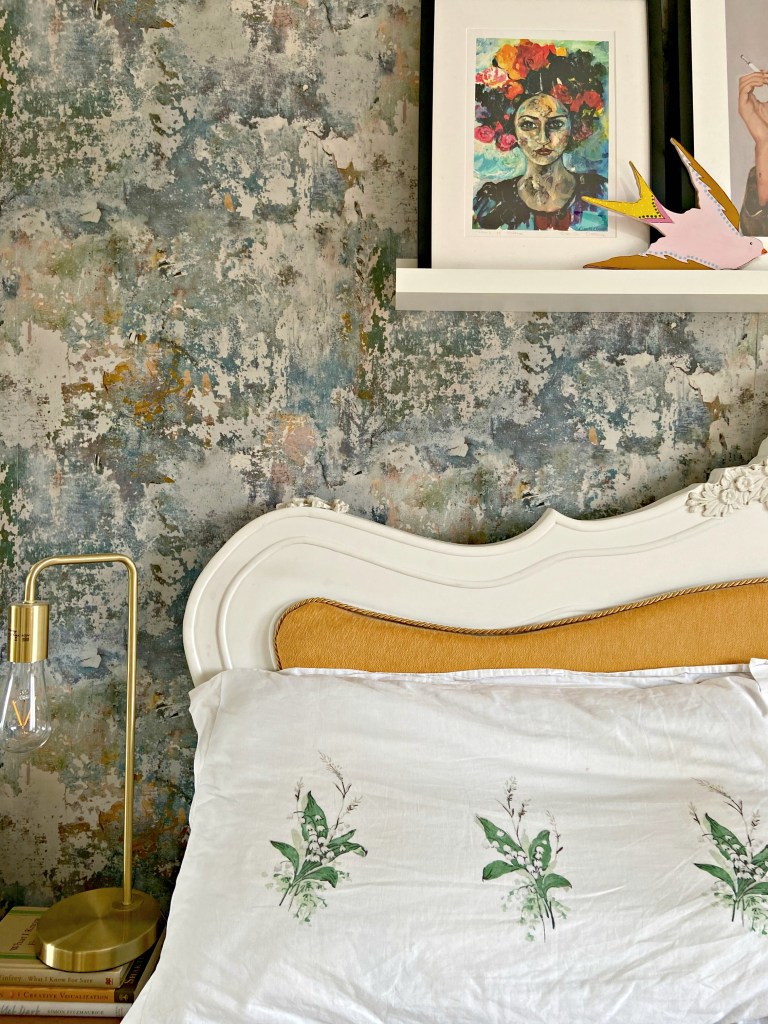 I tend to move my pictures around the house a lot! At the moment I have it over our bed which I recently wallpapered.