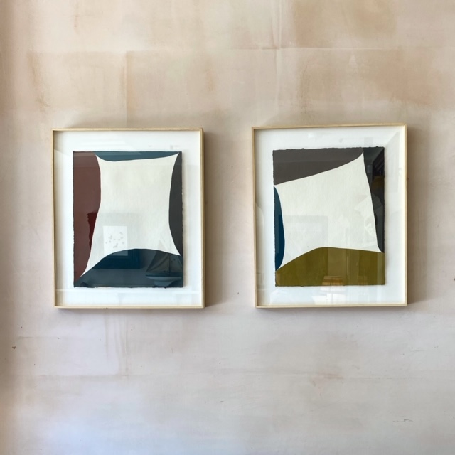 They hang side by side in our kitchen, opposite the island, so they have prime pomp position. Our walls are raw plaster and this allows the pictures to really sing.