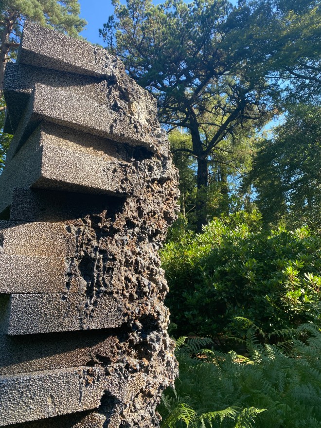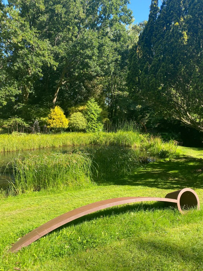 We got lucky with the weather on our visit to Fulmer Contemporary. After days of drizzly grey sky, the sun came out, adding a honey hued dimension to the beautiful moss coloured woodland and formal gardens where 18 artworks are displayed.