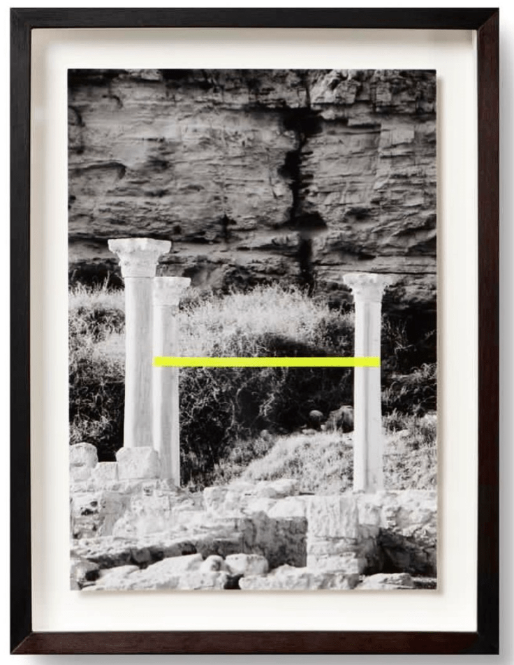 Amy Stephens is a recognised sculptor whose minimalist work explores the relationship between organic form and the manmade. Her work can be found in collections around the world. This edition print features a 6th Century basilica on the beach in Southern Cyprus, set against layers of cliffs. The artist has added a strip of neon tape which gives a sense of structural support to the ruins, whilst also bringing to mind barrier security tape. I also love Amy’s sculpture pieces and unique prints – we’re lucky to have a number of her works at home, having known her for some years.