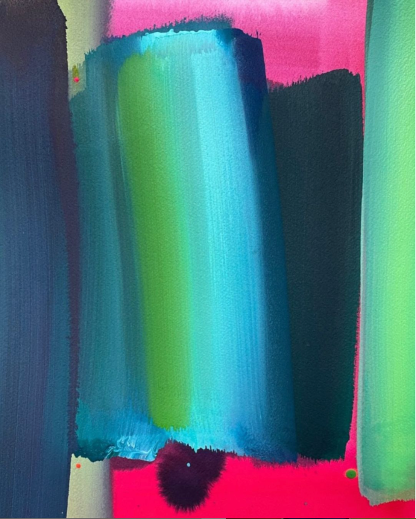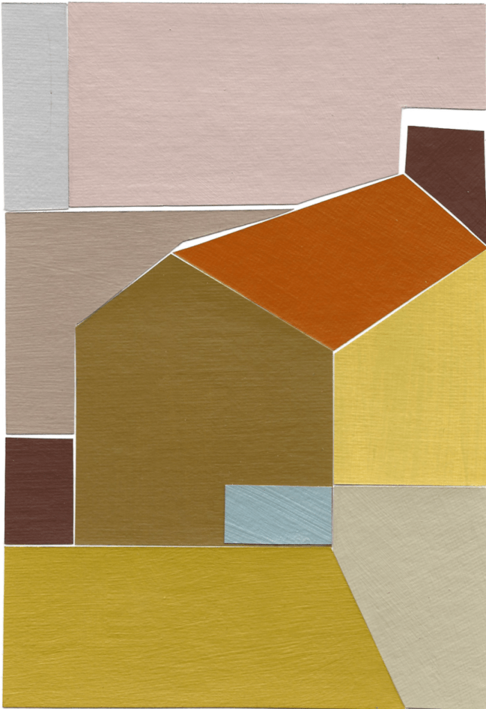 Anna Mac’s collages are mesmerising. The bold, neat blocks of colour slot together in such a satisfying way. And her colours…. I get lost in her beautiful combinations – the way that little blue patch sits so perfectly amongst the retro hues of mustard and brown. Like many of the artists I’ve selected here, Anna started making these collages during the first lockdown. With each collection she produces, she chooses a charity to donate 20% to. The current charity is Unicef. Also check out Anna’s modernist paintings of chairs – they’re absolutely captivating.