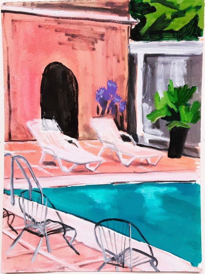 Last but not least Lucy Smallbone, whose distorted landscapes transport me to another place. This particular painting evokes a hazy memory of Mallorcan holidays in the sun. I love how the light hits the water and the heat bounces off the terracotta tiles. Lucy has a great selection of works listed on her instagram, including oil paintings on board.