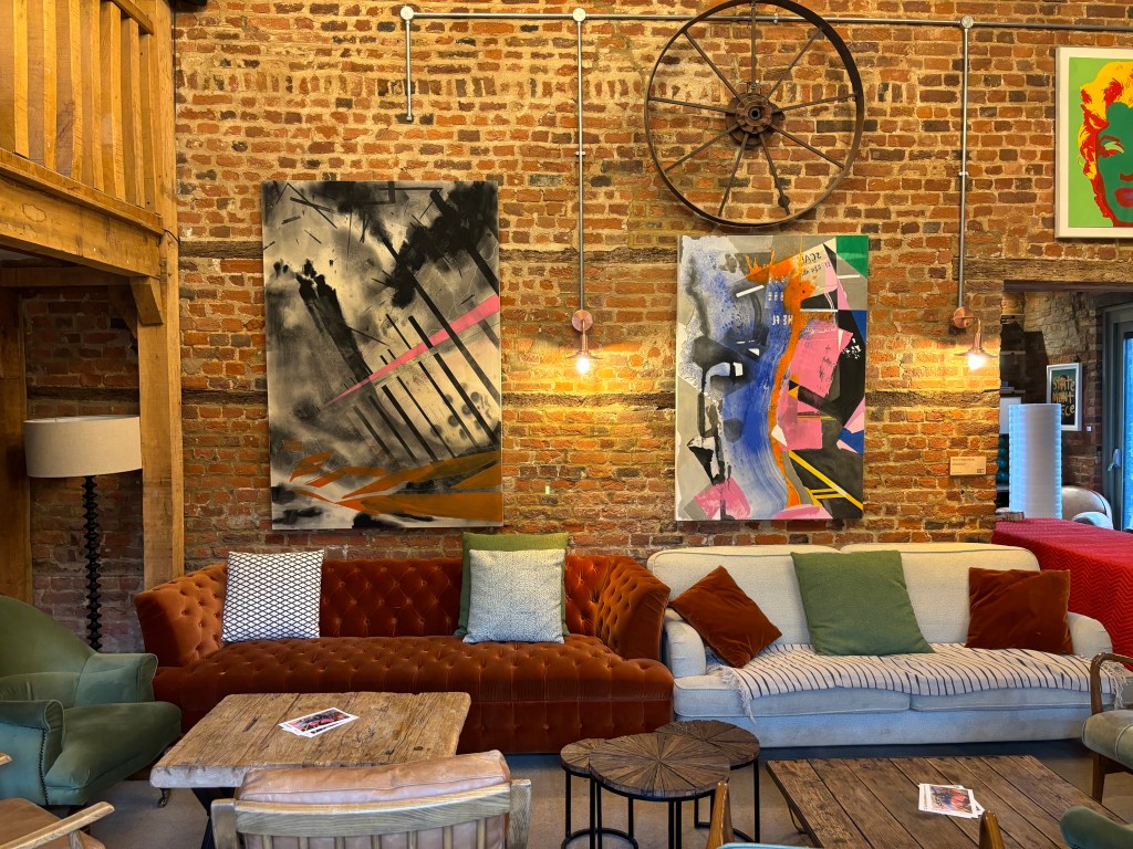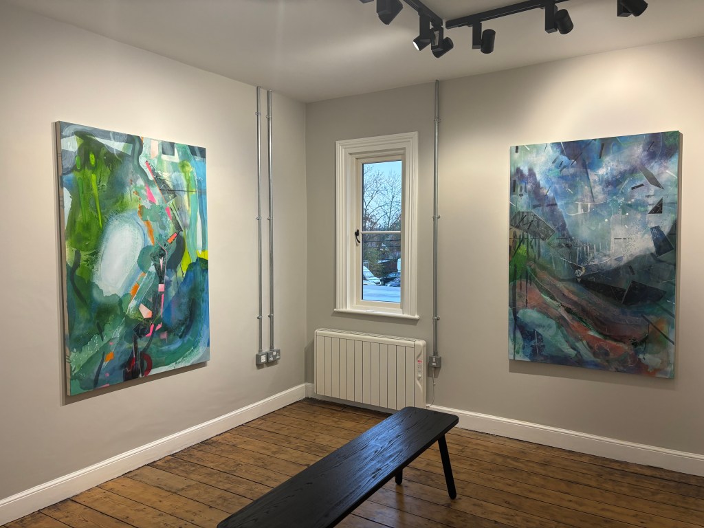 Our fourth art exhibition in Station Master’s House, ‘Entropy’ is by abstract painter Stuart Jones. We first saw Stuart’s work when we visited his studio in Letchworth Garden City back in 2023. We were looking for large abstract works for a corporate project in Birmingham and Stuart’s work was perfect.